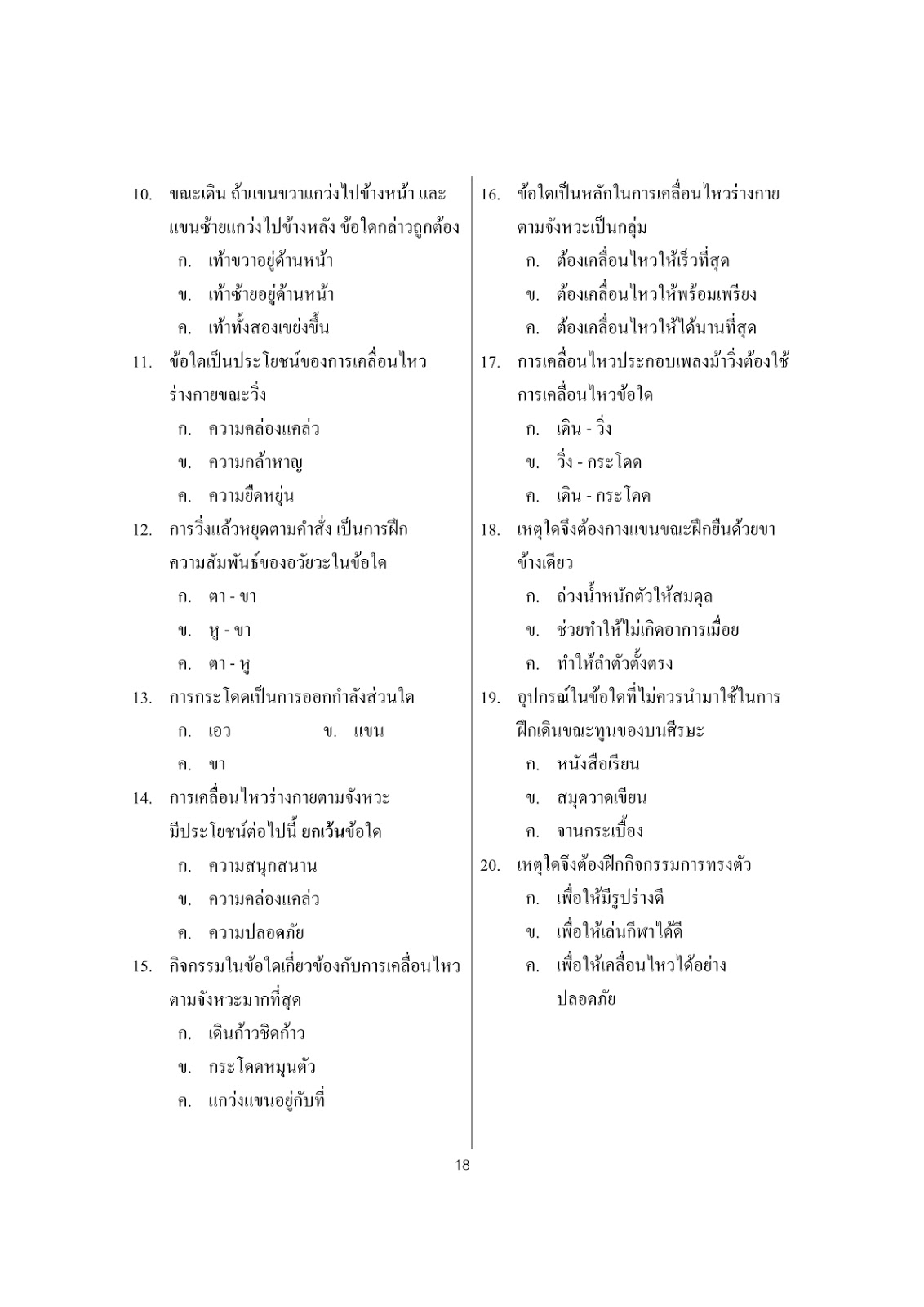 ข้อสอบมาตรฐานชั้น ป.1 - สุขศึกษา และพลศึกษา - ตอนที่ 2 พลศึกษา หน่วยที่ 1 มั่นใจในการเคลื่อนไหว