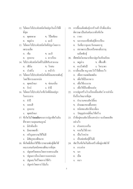ข้อสอบมาตรฐานชั้น ป.4 - วิชาการงานอาชีพและเทคโนโลยี - หน่วยที่ 2 งานเกษตรคู่บ้าน