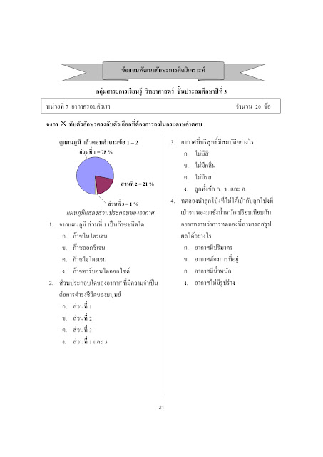 ข้อสอบมาตรฐานชั้น ป.3 - วิชาวิทยาศาสตร์ - หน่วยที่ 7 อากาศรอบตัวเรา