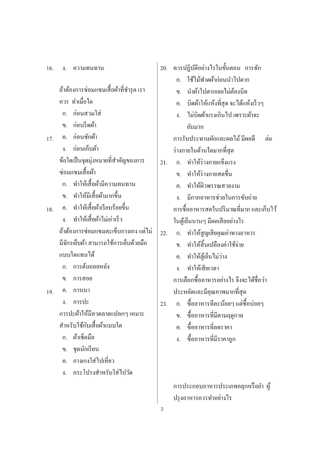 ข้อสอบมาตรฐานชั้น ป.5 - วิชาการงานอาชีพและเทคโนโลยี - หน่วยที่ 1 งานบ้านน่ารู้